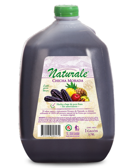 La Chicha Morada es la bebida no gasificada más consumida en el País. Nuestra chicha morada lista para tomar NATURALE está hecha a base de pura fruta, sin ningún tipo de saborizante y respetando todos los ingredientes de la receta tradicional: Maíz morado, Membrillo, Piña, Manzana, Canela y Clavo de olor.